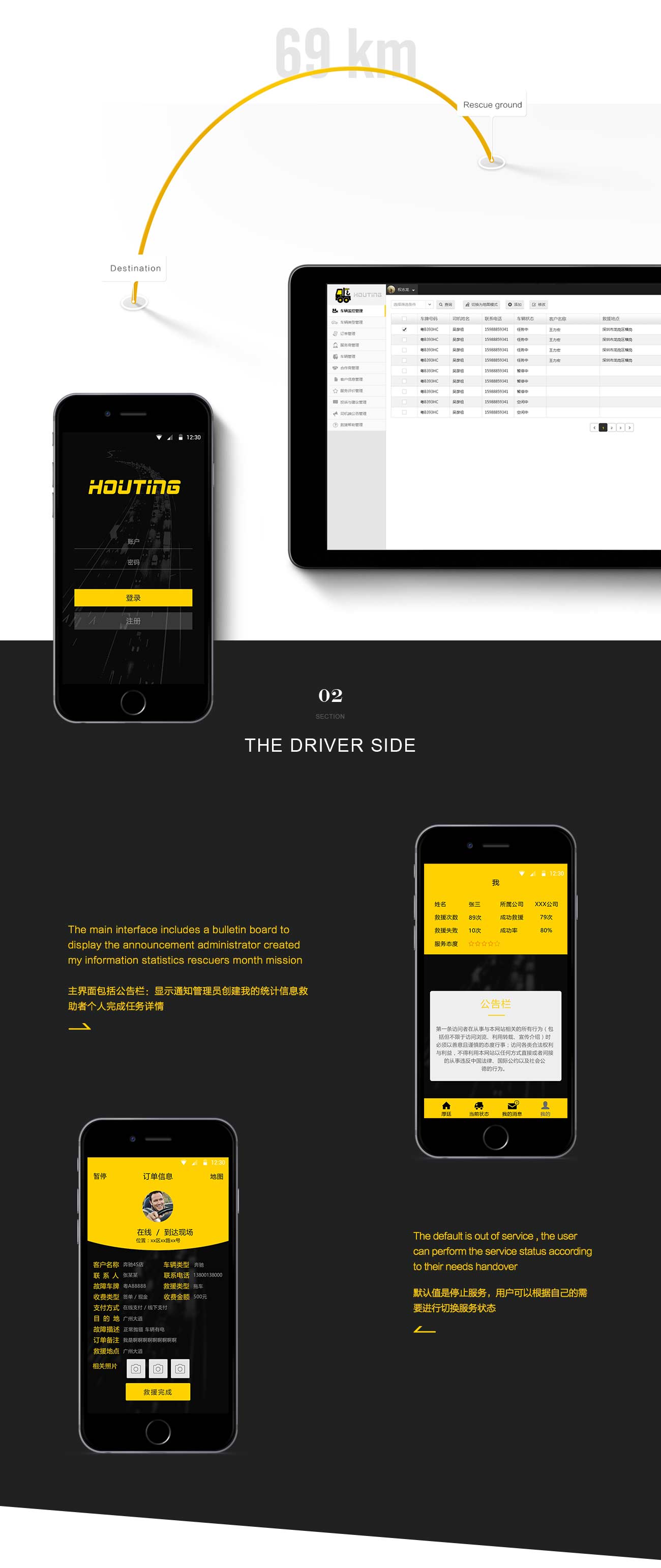 厚廷拖車 是一款服務於汽車、道路救援拖車的APP。平臺組建了調度管理繫統,採用GPS進行全程監控管理模式。亞勢力為其提供APP司機端、微信用戶端、PC後臺管理端三合一定制開發服務。